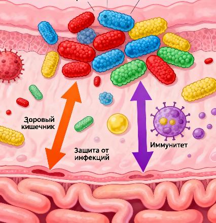 Кишечная микробиота обучает и регулирует иммунную систему. Низкое разнообразие микробиоты ассоциировано с повышенной склонностью к инфекциям, аллергиям и аутоиммунным заболеваниям.